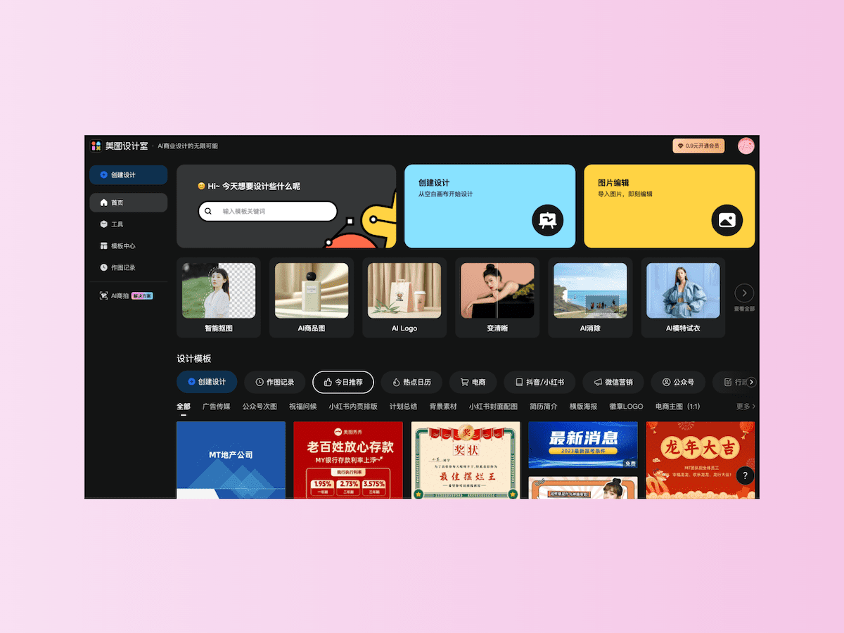 美团AI工具平台,图片编辑、AI LOGO、AI PPT、AI海报、AI商品设计、AI智能抠图,图片无损放大等