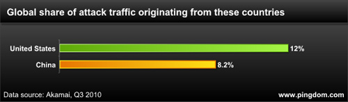 所谓“攻击流量”,是指自然界的恶意流量,例如试图获得通过各种方式非法访问到计算机的端口,利用操作系统中的薄弱环节攻击计算机,这包括所谓的端口扫描以发现潜在的计算机漏洞。美国的交通部曾经有被攻击过的”美誉“。这方面中国是第三(仅次于俄罗斯)。