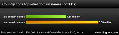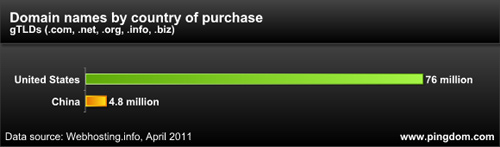 对域名数量的统计通常按域名的购买地而非购买人所在地进行分类。由于互联网用户热衷于在美国注册域名,因此美国的域名数量会超出实际数量。