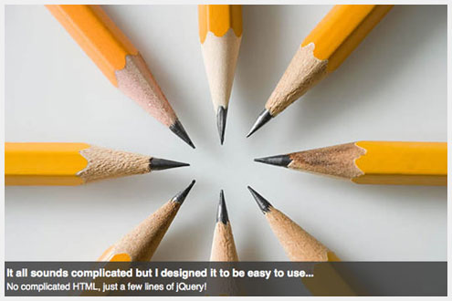 幻灯片是一个疯狂的简单的幻灯片为jQuery插件。 有了这样的循环,自动播放功能,褪色或幻灯片过渡效果,淡入淡出,图像预压,并自动生成的分页。