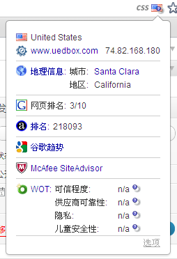 这个扩展可以显示国家(国旗图标)或地区的名称,主机的IP,地理位置,谷歌的PageRank,Alexa排名,你访问的网站叠加显示WOT的信息。