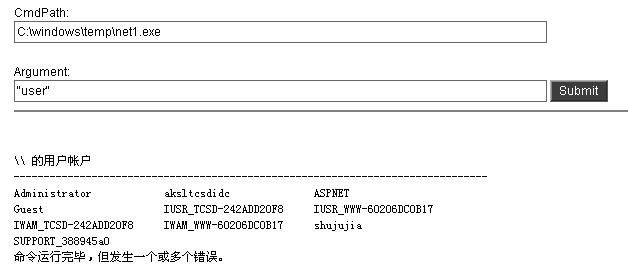 假设更cmd在同一个目录,c:\\windows\\temp\\net.exe