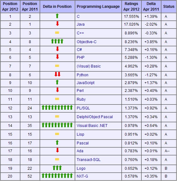 2012年4月份编程语言排行榜