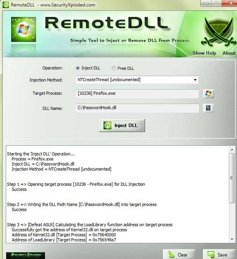 RemoteDLL是老外开发的一款DLL注入、卸载工具,它已经在许多顶级程序中使用,如pwdump等,许多间谍软件都使用这种技术隐藏自己的进程,其中包含注入到正常的windows进程中,你可以使用该工具轻松注入进程,并且可以帮助删除恶意的DLL。它支持下面的DLL注入方法: