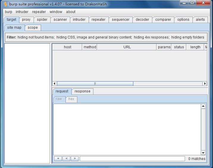 4、执行命令java -jar burpsuite_pro_v1.4.07+.jar,出现界面完成