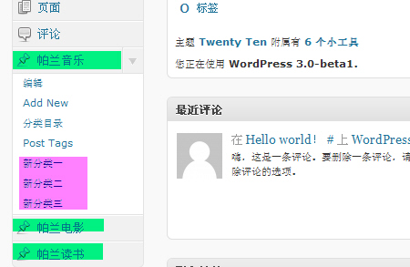 但不管怎么说,整合了这个功能还是挺让人激动的。反正需要才激活,不需要也没影响。WordPress3.0在其它方面还有很多的更新,比如后台的风格稍微改变了一些。