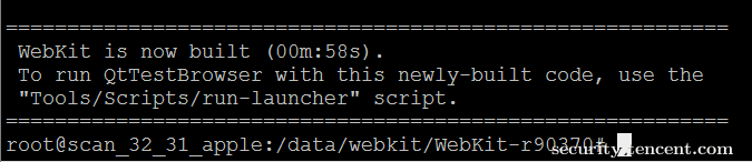 接下来我们需要编译安装WebKit引擎,笔者采用的版本是WebKit-r90370。笔者在编译时遇到不少变量未声明,未定义的引用等编译错误,不过只要有源码,什么都不怕,耐心查看源码后均已解决。当你看到下图时,恭喜你,整个QtWebKit环境已经编译成功了。