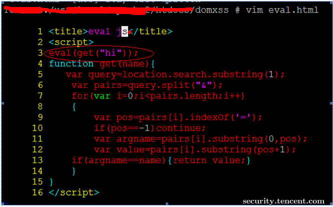 另一个问题是SuperHei大牛在TSRC上报的Eval等可执行函数过滤不严导致的XSS,笔者简单模拟了这种漏洞触发场景,如下图,这种并非通过插入新标签或属性来触发漏洞,系统暂时未能有效发现。