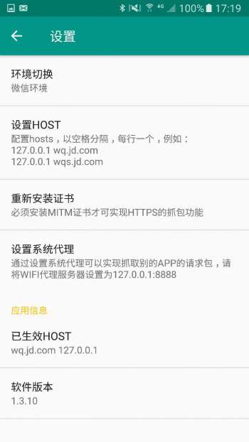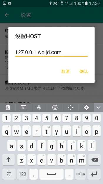 - 可进行hosts配置修改域名解析,每行一个,空格分隔,例如 127.0.0.1 wq.jd.com