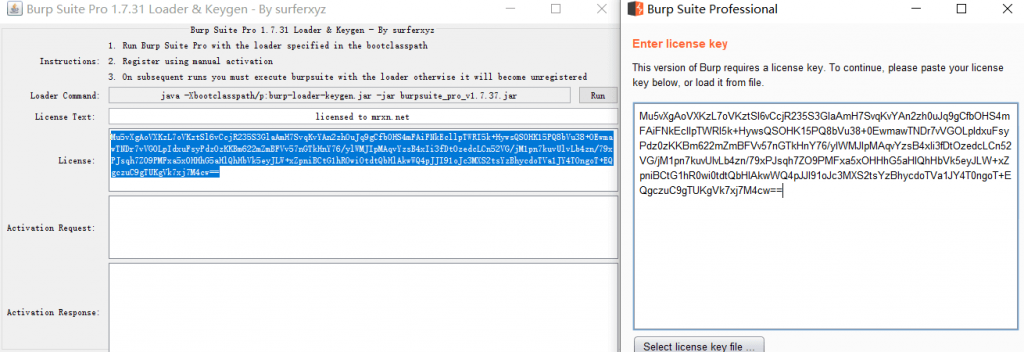 一、打开burp-loader-keygen.jar,然后复制License文本并单击