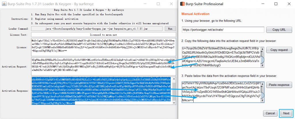 到激活请求并复制激活响应以将其粘贴到,最后它就可以了。