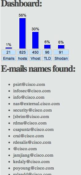 theHarvester是一个社会工程学工具,它通过搜索引擎、PGP服务器以及SHODAN数据库收集用户的email,子域名,主机,雇员名,开放端口和banner信息。