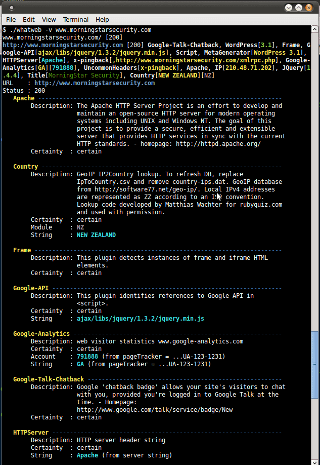 WhatWeb:下一代网站指纹技术栈识别扫描器,拥有超过1800个扩展插件