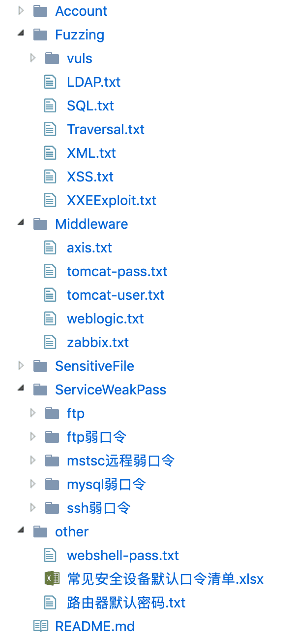 该项目维护者收藏了弱口令,敏感目录,敏感文件等渗透测试常用攻击字典。用于项目的安全审计与安全检测。