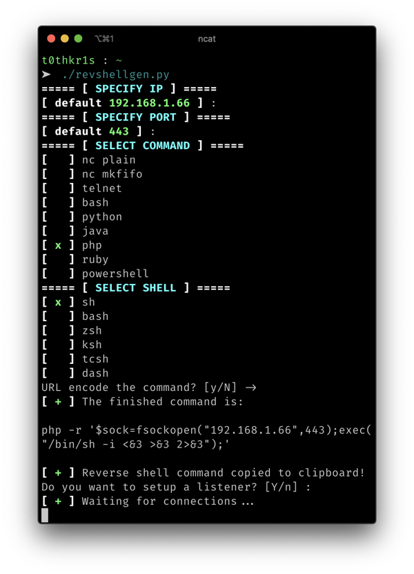 ,并自动化无聊的东西,如URL编码命令和设置监听器等。