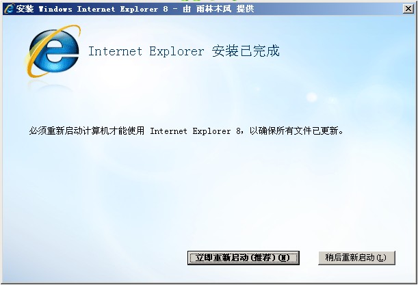 以上代码存为ie.bat,双击运行,再次运行IE升级程序,好了现在能正常升级了,如下为我升级成功的截图。