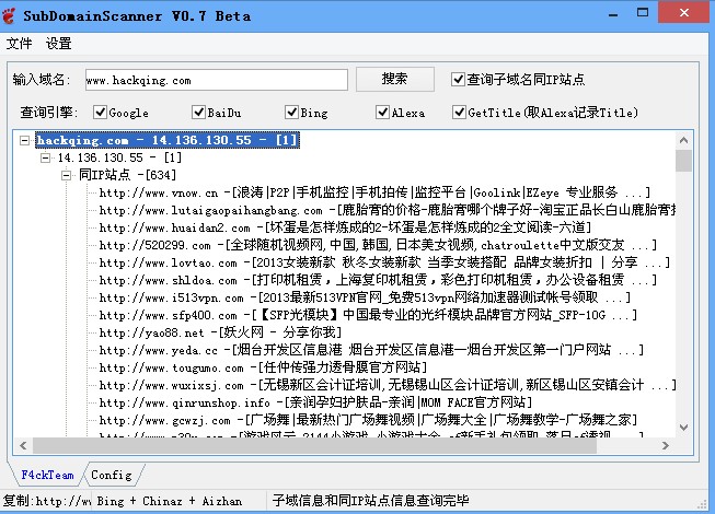 SubDomainScanner旁站及二级米查询