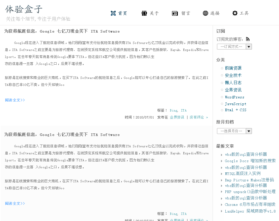 的情况下转载,若非则不得使用我方内容。 本来打算暂时使用默认风格的,但这几天有人跟我说换个风格吧,默认的很土? 呵呵,想偷下懒都不行,所以今天就抽空做了个初稿的效果,会慢慢完善并制作完成的,效果地址是:https://www.uedbox.com/beta/
