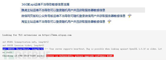 该bug是由安全公司Codenomicon和谷歌安全工程师独立发现的,据了解国内大量网站存在该漏洞,网友更称该漏洞为今年史上最强大的漏洞,如下图: