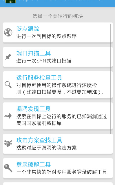 而具体的内容Google 一搜一麻袋,不再多说,请参考dSploit—Android网络渗透套件测试小记
