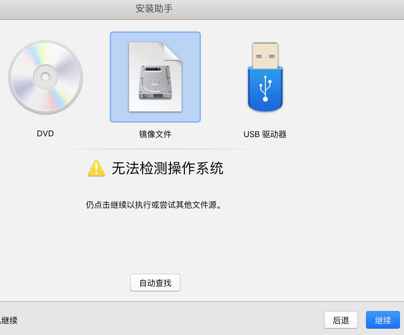新建虚拟机,选择 WePE_64_V2.0.iso 这个引导镜像,可能会有如下之类的提示,无视跳过即可