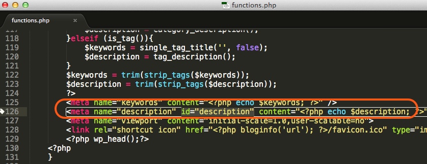 - 这里要注意的是在Wordpress中meta标签中description默认是name属性,而document.getElementById是需要设置ID的,否则获取不到简介。所以要对Wordpress中你使用的主题模板进行设置,方法如下:
