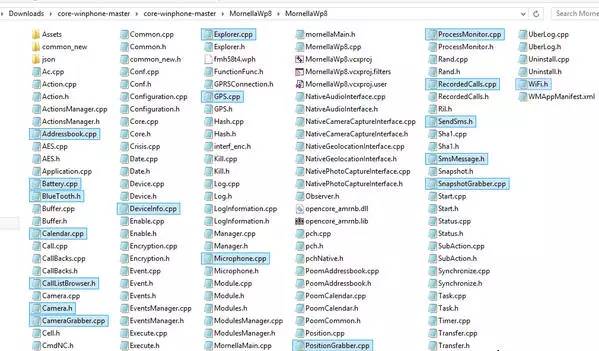 1 core-winphone-master.zip是Windows Phone的RCS木马。据说在WP设备上实现“激活追踪”是利用了系统中的一个0day,允许第三方代码程序像受信任程序一样执行。该RCS还可以获取联系人、日历、通话、地理位置、短信、传感器状态状态等信息。程序ID为:11B69356-6C6D-475D-8655-D29B240D96C8。