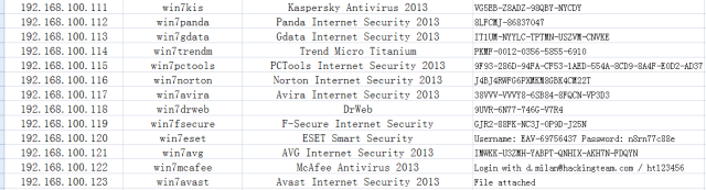 test-av-master.zip是第一代产品。test-av2-master.zip是第二代产品。HT给他们起名叫AVMonitor。这个系统主要使用来做查杀检测,用来保证自己的产品可以通过检测。test-av2-master.zip\test-av2-master\doc\AVTEST Box.xlsx保存了他们使用的杀毒软件的列表和序列号。