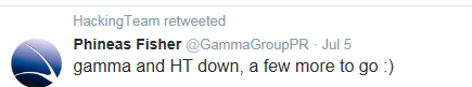 1 Phineas Fisher号称自己黑了gamma和HT。HT的twitter还转发了这条消息。。。