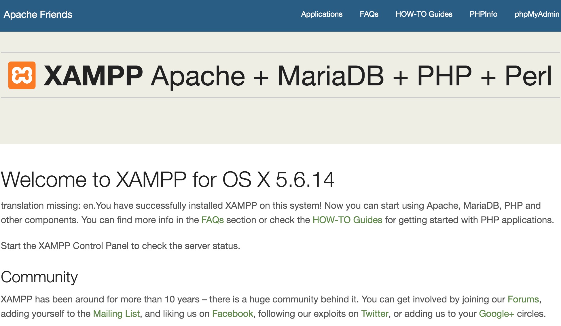 在WIN下可以简单的装个Apache+php+mysql,但在MAC下如果不借助第三方软件感觉还是有些繁琐了,之前一直用的brew装的APACHE+PHP+MYSQL,用起来总要输几次命令,开发变得不那么敏捷了,今天换成了XAMPP,下面记录一些安装日志: