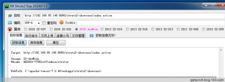 Struts2漏洞检测工具 Struts2漏洞测试工具 K8 struts2 exploit Test Struts2 GetShell