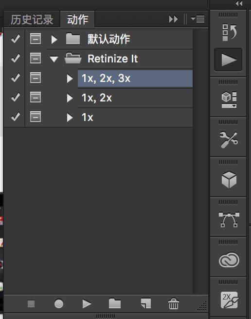 切图是个重复性动作,Photoshop允许我们录制自己的动作,然后应用在每次操作上。