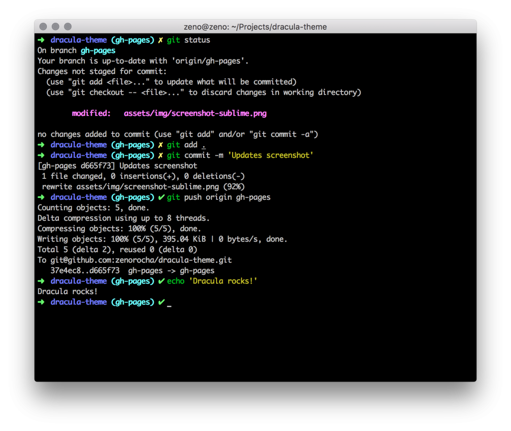 | 1 | $ ln -s $DRACULA_THEME/zsh/dracula.zsh-theme $OH_MY_ZSH/themes/dracula.zsh-theme |