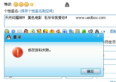 刚刚才发现原来QQ也要过滤一些词条,因为刚在看动漫,然后有句觉得精典的词想记下来,于是直接打开QQ想先粘贴在个人签名里边,结果放上去后一直保存不了,提示修改资料失败,刚开始以为是网络问题,于是QQ离线再上线,再保存还是同样的,很奇怪,就想到了会不会是因为过滤掉了呢?但是这种词条太普通了吧,完全没必要。