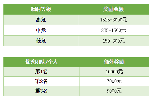本期众测活动将对每个确认的漏洞进行奖励,单个漏洞奖金最高可达3000元。另外,活动结束后将评选出TOP3优秀个人或团队,颁发LSRC专属定制奖杯和额外奖励。