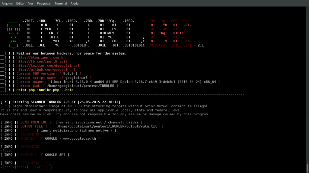 | 1 2 3 | $chmod +x inurlbr.php Executar: ./inurlbr.php |