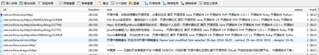 nutch命令前面章节介绍到了执行完在mysql中即查看到爬虫抓取的内容,如下图: