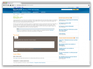 图片可能胜过千言万语,但同时也占用了大量带宽。图像可以通过 Photoshop等处理软件优化,以满足网站使用。但如果你没有这些臃肿不堪的桌面软件,你也不会束手无策,Smush.it 可以完全满足你。由雅虎开发者网络开发的在线图片优化工具 Smush.it,能有效减少图像大小而不降低其质 量。对于 WordPress 用户,更有方便强大的 WP-Smush.it插件可以使用。